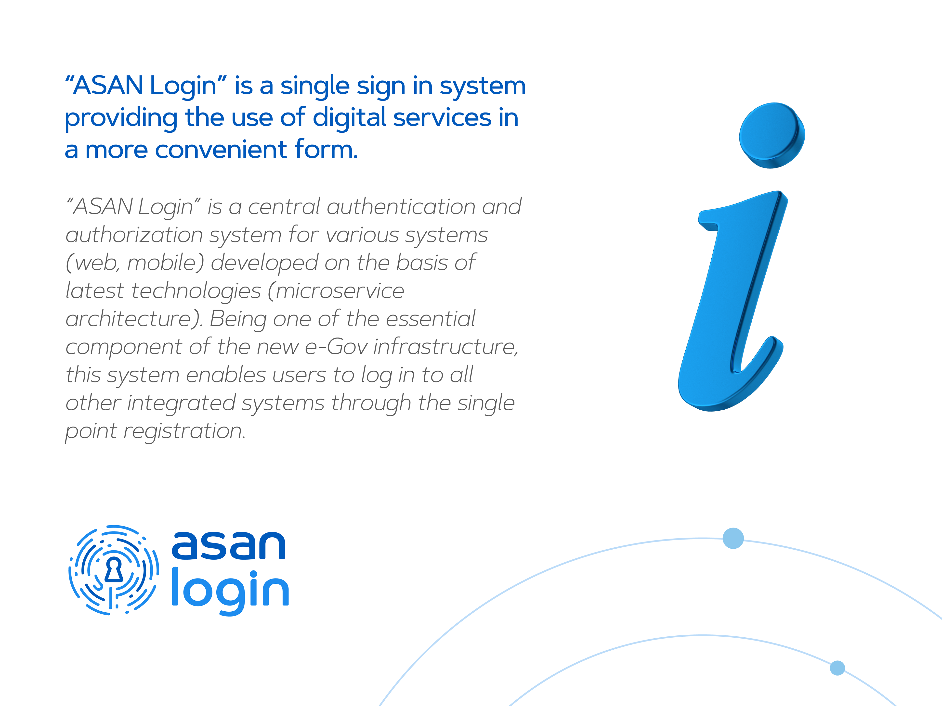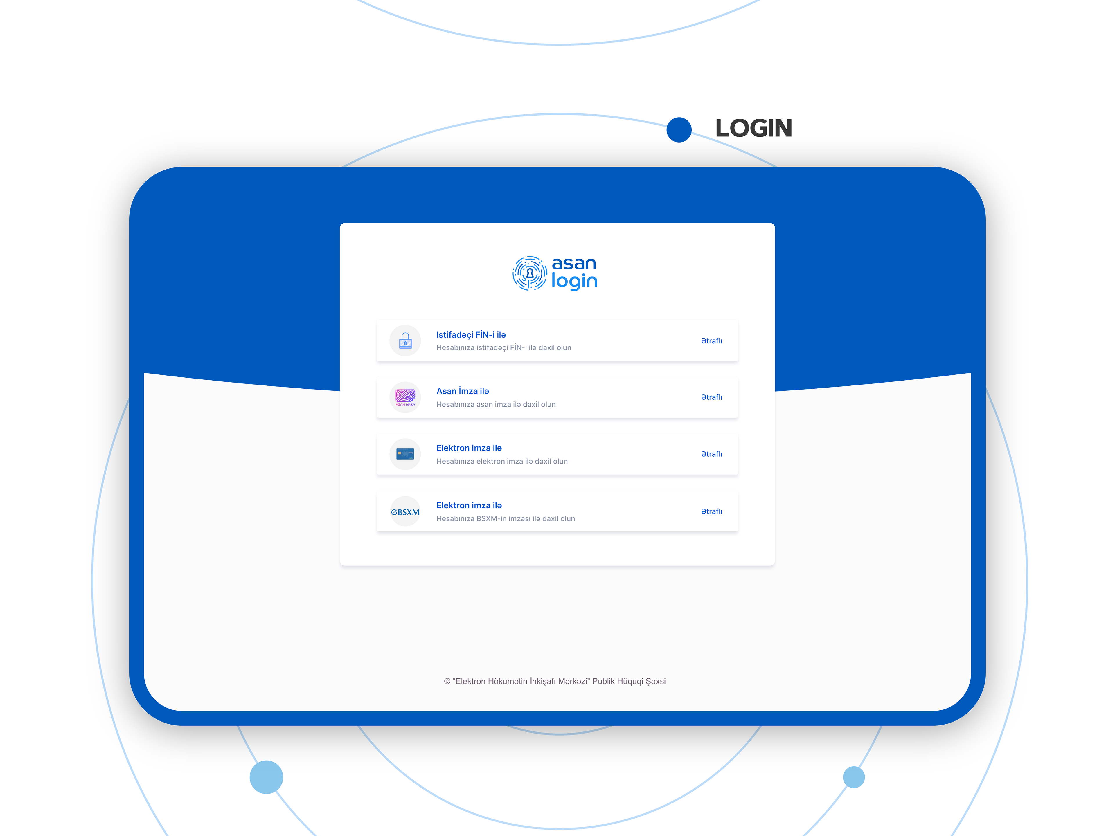 “ASAN Login” is a single sign in system providing the use of digital services in a more convenient form. “ASAN Login” is a central authentication and authorization system for various systems (web, mobile) developed on the basis of latest technologies (microservice architecture). Being one of the essential component of the new e-Gov infrastructure, this system enables users to log in to all other integrated systems through the single point registration.
